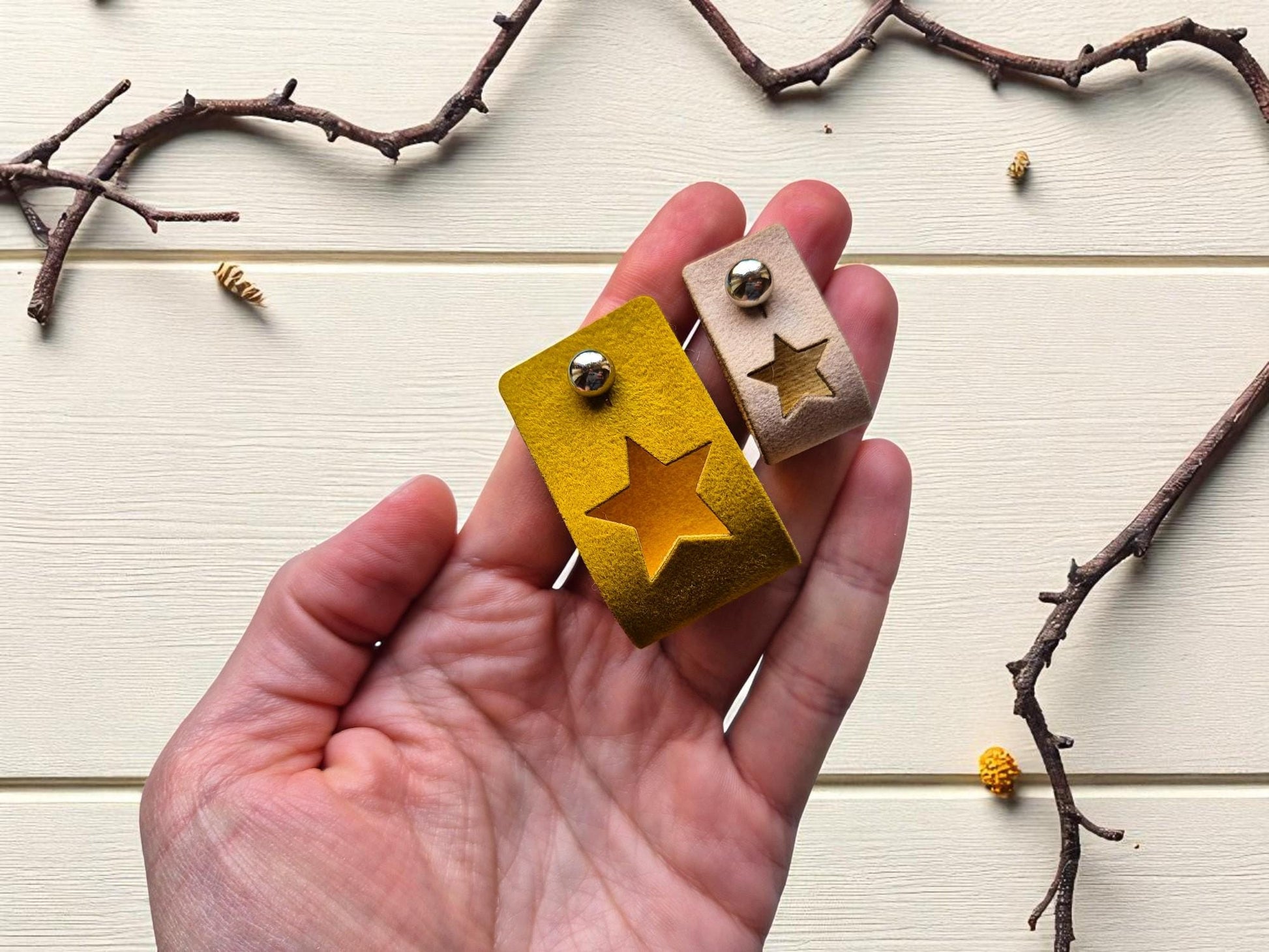 – Klein mit Niete: 1,6 x 7 cm / 0,6 x 2,8"